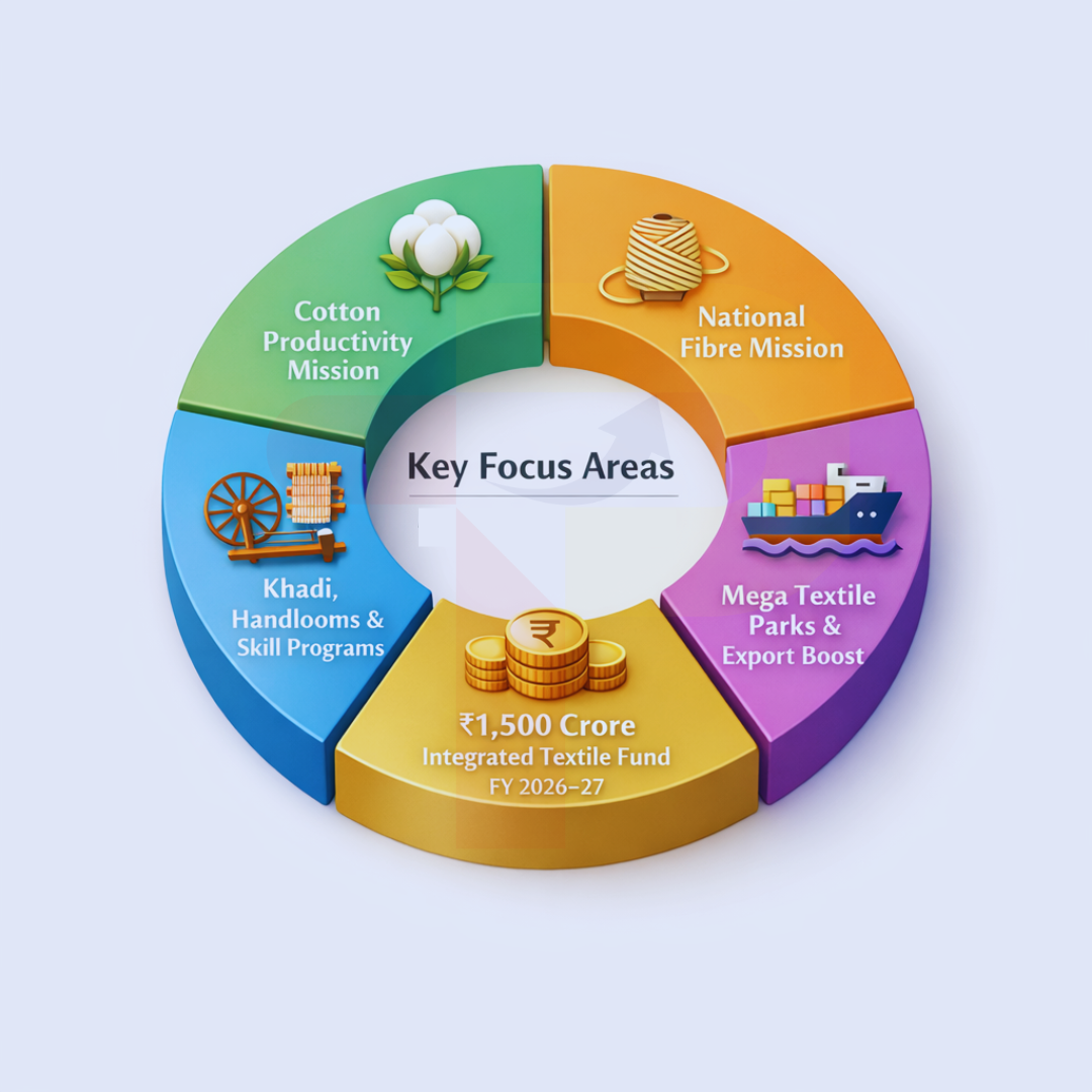 The Budget announced the National Fibre Mission and Cotton Productivity Mission to boost fibre self-reliance and raise cotton yields.